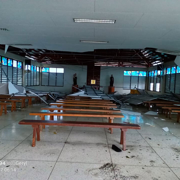À part quelques blessures mineures causées par des débris volants, les sœurs et les enfants des Villages sont tous sains et saufs. Sœur Eva : « Il y a des dégâts partout, mais nous sommes quand même reconnaissants car tout le monde est en sécurité et n’est pas tombé malade. Les garçons font de leur mieux. Ils ont tous aidé et aident maintenant au nettoyage et au déblaiement des débris. »