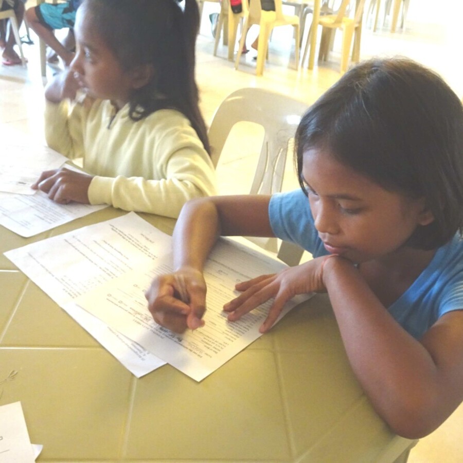 Les déplacements se font plus vite quand on circule tôt et nous sommes arrivées à Burauen à 9h30. Mais nous n’avons pas eu le temps de prendre notre petit-déjeuner car il fallait d’abord faire passer les tests d’admission aux 93 enfants qui nous attendaient depuis la première heure du matin.